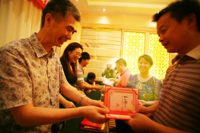 7月13日,北京电影学院摄影学院教授 、中国摄影家协会会员唐东平(左一)等 为武穴市首届“中农华威杯”荷花摄影比赛获奖者颁奖。由武穴市摄影家协会主办,武穴市政协文史委、石佛寺镇政协联络处协办,湖北省中农华威有限公司承办的中农华威杯”荷花摄影比赛激发了该市摄影爱好者的创作激情,以本埠荷田为创作背景,共创作了数百幅有关荷花的作品,并得到来自北京电影学院摄影学院教授唐东平教授,六盘水市摄协主席李华奇,中国摄影家协会会员、中国女摄影家协会理事长孙君媚家等专家评委的好评!本报视界网冯怡红摄