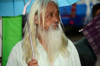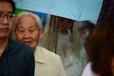 “养生神农架,问道红花坪”。2014年7月12日,神农架红花养生风情小镇项目开工现场,现鹤发童颜老人。