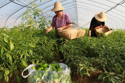房县年产绿色蔬菜1000万吨 7月13日,房县化龙堰镇长望村农民向宗明(右)在蔬菜基地采收辣淑。落户该县的安徽日升绿色蔬菜公司,在化龙堰镇长望村经营全县目前规模最大的绿色蔬菜产业园,面积达700亩,对栽培的蔬菜实行产前、产中和产后无公害化管理,将化肥、农药拒之门外。年产无公害蔬菜将达到1000万吨,成为全县早春蔬菜和秋淡绿色蔬菜外销重点供应基地。 本报视界网张启龙 摄 湖北房县水务局 张启龙 邮编:442100 电话:0719-3247077