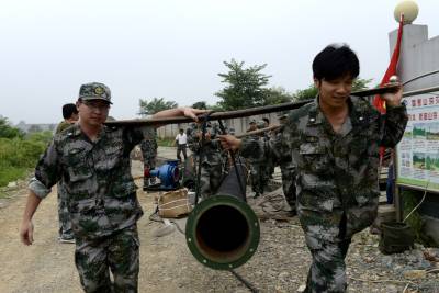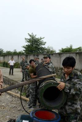 宜都枝城镇举行防汛演练 7月15日,宜都市枝城镇组织民兵应急分队举行防汛演练。针对枝城镇汛期内涝严重,本次演练假设某地内发生内涝,15名应急队员接到指令,在一个小时内将22千瓦的抽水机装好,及时向外排水。