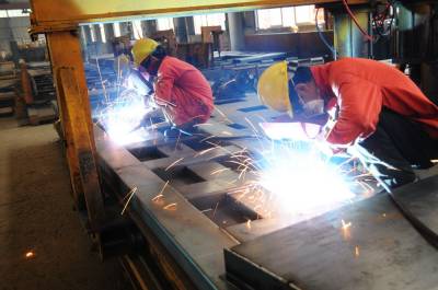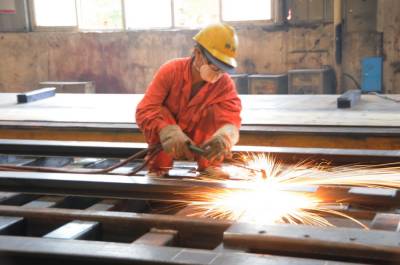 7月16日,技术工人正在郧县开发区湖北神河汽车改装车间内焊接汽车大厢和改装生农用自缷汽车。该公司生产的7大类180多个汽车型号年销售10000多辆,创产值近15亿元,上交利税4750多万元。 夲报视界网 周家山 摄