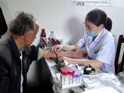 7月16日,建始县花坪镇妇幼保健计划生育服务站工作人员在该镇易家荒村为老龄人免费体检。