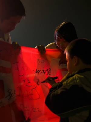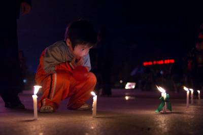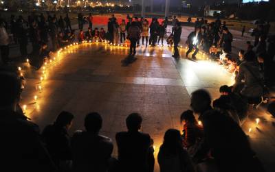 4月20日晚,咸宁市200余名网友齐聚人民广场,为玉树灾区默哀、为玉树同胞们祈福。