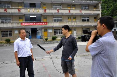 7月18日,中央电视台开门大吉栏目组编导沈忱,正在回访恩施市石窑中学教师代表。