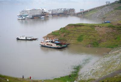 7月18日在湖北省秭归县茅坪镇拍摄的水位上涨后的三峡水库。