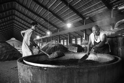 落日熔金映古宅
