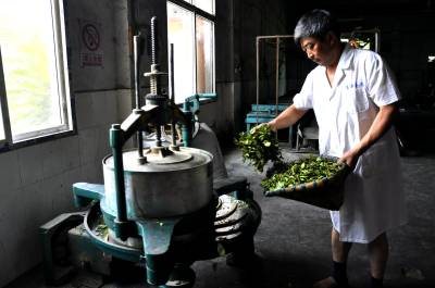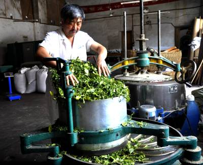 拓宽茶农增收新门路 7月20日,在恩施市富之源茶叶加工车间,工人正在忙碌着赶制夏茶。 入夏以来,恩施市富之源茶叶有限公司组织技术员研讨茶叶加工“工艺”,将8000多亩茶园管理中修剪的茶叶进行回收深加工,拓宽茶类生产新路子,帮助茶农排忧解难,让茶农实现一年三季增收。(视界网彭绍峰摄)