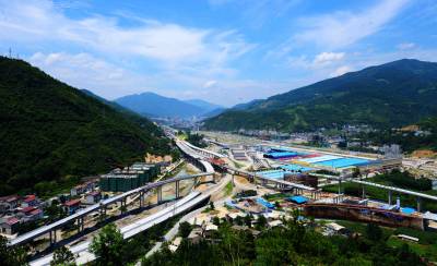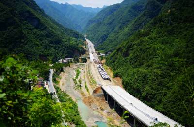 7月20日,保康县城关镇窑其堰。这是正在建设中的麻竹、保宜两条高速公路互通枢纽工程。