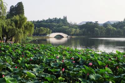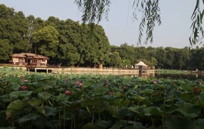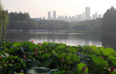 东湖建有国家湿地公园。拥有梅园、荷园、樱花园等13个植物专类园。东湖荷园是中国荷花研究中心,有荷花700多种,占世界80%以上,是世界规模最大、品种最全的荷花品种资源圃。时值盛夏,各色荷花含苞怒放,碧水蓝天、垂柳夕阳,宛若仙境,让人流连忘返。