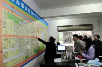 仙桃市龙华山黄荆小区的工作人员正在向来宾介绍流动人口管理的方法。这个社区加强人口登记管理,打造平安社区,先后被国家和省主管单位和部门授予和谐示范社区等多项光荣称号。(记者杨平摄)