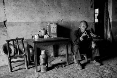 大悟县三里镇靳田村,离镇有几百公里的山里,住着一户人家,殷达正,男,75岁,有一儿一女,和老伴相依为命。儿子前几年得病去逝。二老身体不好,常年吃药都是女儿买,日常生活靠种田、喂鸡来养活。至今过着最简朴的原生态生活,家里的现代用品仅有的就是一部手机,和女儿保持联系,家里没有一件电器化物品,照明仍然用的煤油灯。 那天我们去时,他告诉我,他老伴病了,去了女儿家,需得住一段时间才能回家。