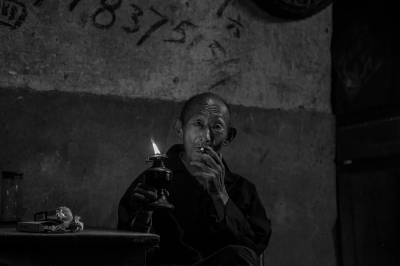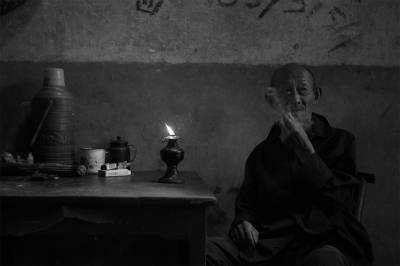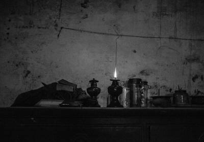 > 点煤油灯的老人