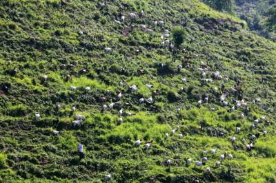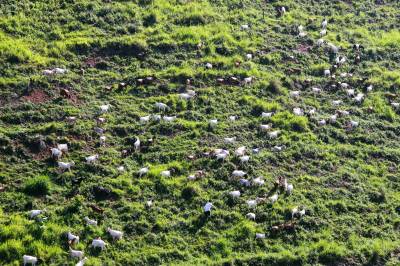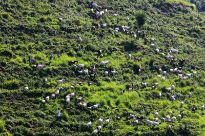 7月22日,竹山县擂鼓镇西河村山羊养殖大户张修平正在放羊山羊。近年来,该县畜牧部门科学规划,因地制宜,大力发展养殖业,探索出“龙头企业+基地+专业合作社+农户”的运作模式,基本实现了品种优良化、养殖规模化、生产标准化、经营产业化、防疫网络化、服务社会化的目标。目前,全县畜牧业总产值达到8亿余元,有效促进了农民增收致富。