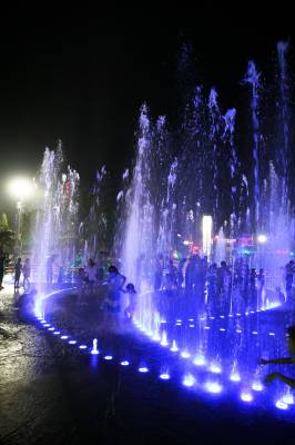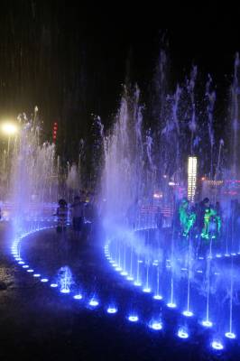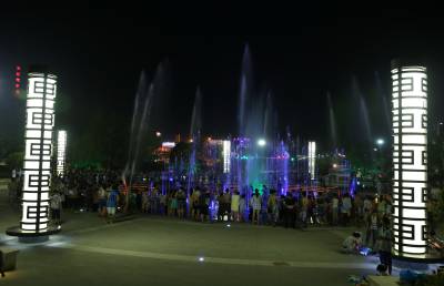 > 高温桑拿天 音乐喷泉好休闲