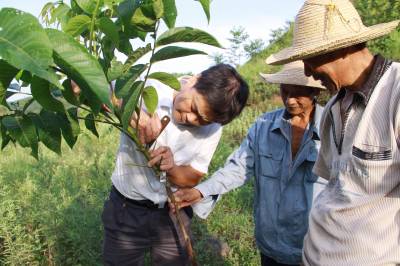 伏天专家忙服务 (图文) 竹山县宝丰镇中心学校 朱本双 电话:13177481456 邮编:442213 电子信箱:zsbfzbs@126.com 身份证号码:422624196910182052 烈日炎炎,伏天高温。7月22日,竹山县林业局林业技术员刘惶元(左)深入擂鼓镇西河村为群众讲解示范核桃伏天嫁接技术。连日来,该县组织林业、农业等部门专家奔赴全县各乡镇、行政村,围绕核桃、茶叶、水稻等高产实用配套技术,一线服务、指导、帮助、带动群众抢收、抢种、抢管。