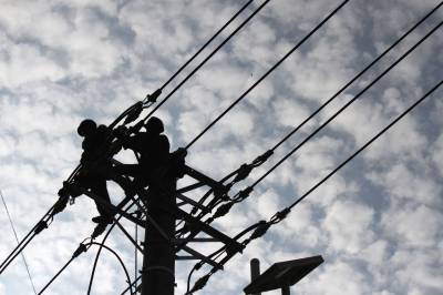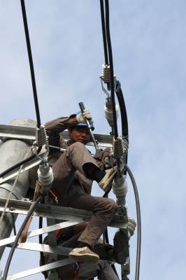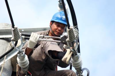 架高压保供电送清凉 7月23日,竹溪县供电公司职工在城关镇北环路架设高压线路。进入高温酷暑,居民用电量也进入高峰,但竹溪县城原有供电线路老化、供电负荷不足,为保障县城居民生活、纳凉用电,竹溪县供电公司沿北环路专门架设一档高压线路,为酷暑中居民纳凉用电需求提供可靠电力保障。