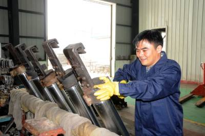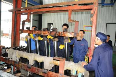 7月23日,博达丰工贸公司工人正在郧县开发区的厂区车间内生产电镀油缸产品。博达丰工贸有限公司电镀各类汽车配件和液压油缸产品,年创产值5000多万元,上缴利税200多万元。 夲报视界 周家山 罗静摄