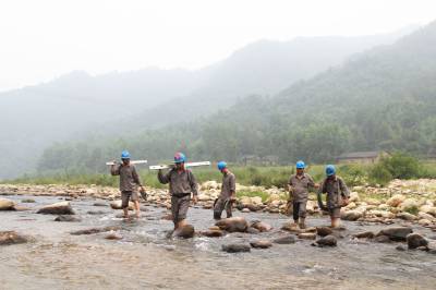 谷城县供电公司迎战高温保可靠供电 7月23日,谷城县供电公司紫金供电所员工正趟水过河抢修损坏线路。近40度的高温天气,让谷城县用电量快速上升,全县日用电量307万千瓦时。面对高温“烤”验,谷城县供电公司12支共产党员抢修服务队紧急行动,昼夜待命,随时做好电力抢修、消缺,确保全县人民生产、生活用电,用实际行动,践行党的群众路线。 本报视界网马明刚摄