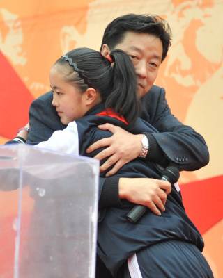 4月21日,”华帝全国1+2红领巾助学工程”恩施州捐赠仪式在利川市谋道镇长坪小学举行,来自全国的40多名经销商正在向特困学生项绍琴现场捐款(图一),项绍琴感动得跟一名好心人紧紧相拥(图二),表示一定会好好学习,回报社会。华帝股份公司此次共向100名学生捐款20万元,并在活动现场为10名受助学生以及学生家长代表颁发了助学金和文具用品,一起种植”爱心树”(图三)。据了解,”华帝全国1+2红领巾助学工程”自2005年4月启动以来,以及在四川、湖北、内蒙等地多次资助贫困学生近2000名,还在四川、宁夏捐建了3所希望小学。