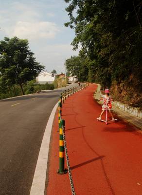 由媒体得知,官庄是政府主导评选出的宜昌市最美乡村之一,于是,周末和家人驱车前往。从西陵区出发,经小溪塔—鄢家河,上小鸦公路,行驶15分钟左右,公路左边立一巨石,上书“官庄”二字,此处左转,顺公路经陈家淌、岩花村至官庄水库。一路上,黑色的柏油马路、红色的行人步行道、木质的长廊,满眼是郁郁葱葱的绿,粉墙黛瓦的民居,流水潺潺的小溪,加之少见的蓝天白云,清新而湿润的空气,使人顿觉神清气爽,感叹确实名不虚传。