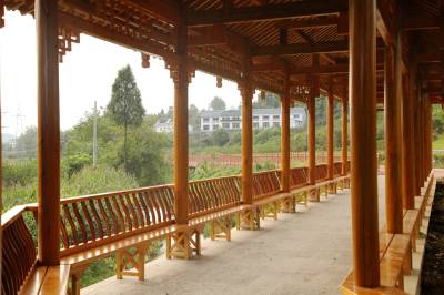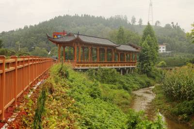 由媒体得知,官庄是政府主导评选出的宜昌市最美乡村之一,于是,周末和家人驱车前往。从西陵区出发,经小溪塔—鄢家河,上小鸦公路,行驶15分钟左右,公路左边立一巨石,上书“官庄”二字,此处左转,顺公路经陈家淌、岩花村至官庄水库。一路上,黑色的柏油马路、红色的行人步行道、木质的长廊,满眼是郁郁葱葱的绿,粉墙黛瓦的民居,流水潺潺的小溪,加之少见的蓝天白云,清新而湿润的空气,使人顿觉神清气爽,感叹确实名不虚传。