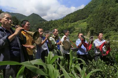 民俗事项说明:薅草锣鼓是土家族的一种伴随劳动生产与音乐相结合的民间艺术形式。每年盛夏,地里的玉米长到半人高时,在抽穗扬花之前都要锄第二次草,土家人在组织薅草时都要打薅草锣鼓,唱起劳动歌。历史上,土家族地区山大人稀,单家独户劳力不足,加上野兽出没,窃食庄稼,伤害人畜。在这种特定的自然条件和劳动环境中,土家族人形成了团结互助、结伴成群、协作生产,并配以锣鼓敲击,既可作为劳作的信息,又可以起到惊吓野兽的作用。久而久之,形成了风格独具的薅草锣鼓。薅草锣鼓具有相对固定的结构格式,它一般由“歌头”(俗称“引子”)、“请神”、“扬歌”、“送神”几部分组成,有着请神求愿、组织生产、鼓舞生产、调节情绪等功能,是土家族人的劳动进行曲。