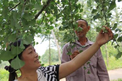 为让村民摘掉穷村的帽子,安陆市王义贞镇刘岗村支书王长慧上任后积极引导村民在房前屋后栽植银杏、柑橘、葡萄、板栗等经济林木。目前,该村各类经济林木发展到1000余亩,农民此项增收过百万元,众多村民因此致富。 图为7月24日王长慧在五组李咸林家分析银杏的挂果情况。 (视界网:王代金 高全涛 摄影)