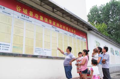 谷城县冷集镇“阳光村务”常态化 7月24日,谷城县冷集镇县、镇人大代表和选民一道正在李洲村查看村务公开情况。近年来,该镇谋划新思路,打造“阳光村务”,全镇村务公开民主管理逐步走向规范化、制度化、常态化。“阳光村务”实现了从固定内容公开向点题公开转变,从固定形式向灵活方式公开转变,从结果公开向全程公开转变,从固定时间向随时公开转变,“阳光村务”更具生命力。 本报视界网马明刚摄