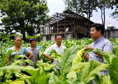 田间指导烟农增收(彭绍峰摄)