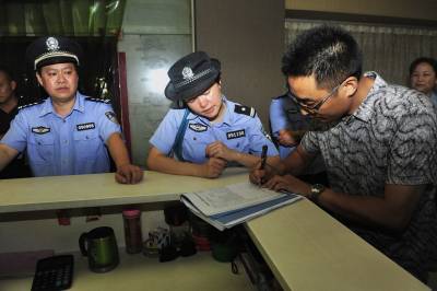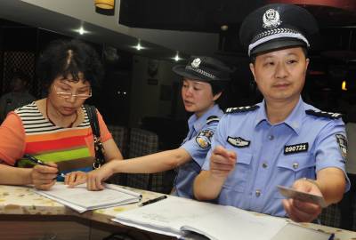 7月25日晚,公安民警通过身份证查询网民的年龄。