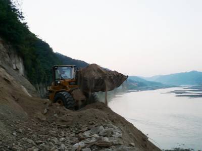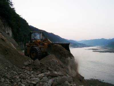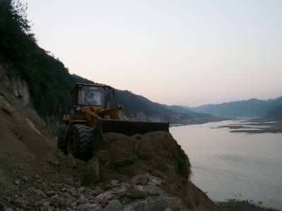 7月28日,铲车在柳五路五峰乡大石沟口清除山体排险产生的路障。目前进行的柳五路改扩建工程,每天都会产生多处路障。施工方注意做到合理利用时间,及时清除路障,方便车辆、行人通行,确保不误大家办事。(视界网周宗华摄) 作者地址:郧县五峰乡政府