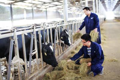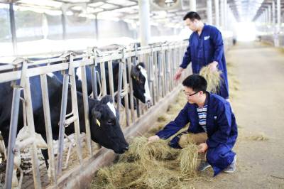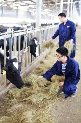 宜昌奶牛产业“牛”劲十足 7月24日,宜昌市夷陵区俏牛儿奶牛养殖场,工作人员正在为奶牛喂养草料。近年来,宜昌市大力实施奶牛标准化规模养殖。先后建成了部、省级奶牛标准化规模养殖场4个,积极打造万头奶牛标准化养殖产业集群。使奶牛产业成为社会主义新农村经济建设新的增长点。 本报视界网 黄翔 摄