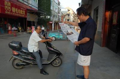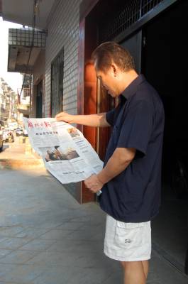 7月26日,国家非物质文化遗产传承人、云梦县“梦泽演戏馆”馆长秦礼刚高兴阅读当日的《湖北日报》。秦礼刚说,湖北日报快捷、及时、高效,可读性强,贴近基层,贴近群众,老百姓爱看。25日,美国友人在云梦“梦泽影戏馆”拍摄皮影戏表演,湖北日报26日就刊出了《美国摄影师云梦拍英文版皮影纪录片》的图片新闻,受到读者的欢迎和好评。本报视界网 陈保忠 摄