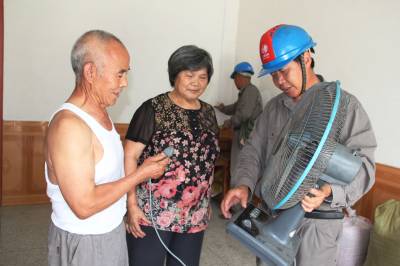 情系留守空巢老人 7月23日,紫金供电所农电工正在紫金街社区给留守老人宣讲家用电器的安全使用常识。随着偏远乡镇外出农民打工的增多,留守、空巢老人安全用电成了谷城县供电人的牵挂。该公司140多名农电工用脚、用心、用真情服务留守、空巢老人,为老人们检查、检修电力设施、线路,宣讲冰箱、洗衣机、电水壶等各种家用电器的使用知识,当好老人们的“电保姆”。 本报视界网马明刚摄