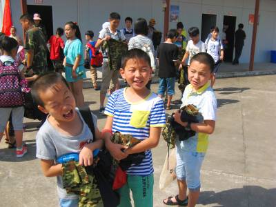 27日,多名小朋友领到迷彩服后开心地笑了。 当天,浙江省东阳市杨家农民工租住地工会组织了60多名农民工子女,其中巴东籍小朋友51人,到横店国防科技园参加少年宫举办的第二届“我的中国梦”安全自护夏令营活动。 据了解,杨家农民工租住地工会是巴东人在东阳发起的一个常设组织,主要为外出务工人员提供各项服务,每年都要组织一些暑期活动,让来爸妈身边团聚的“小侯鸟”们在东阳过上一个快乐的暑假。 通联:巴东县新闻中心 电话:13997752185