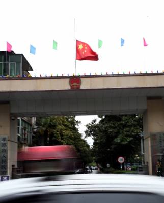 4月21日,孝感市委、市政府大院降下半旗,为青海玉树地震中不幸罹难的同胞志哀。当日,孝感社会各界也纷纷降半旗表达对遇难同胞的哀悼之情。 签约摄影师 晏美华 摄