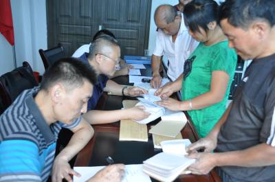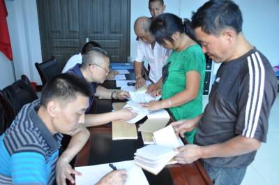 28日,鹤峰县太平镇中坪村委会,镇财政所和村民共同审计村里财务 太平镇纪委为让今年9月村支两委班子“清白”换届,组织镇财政报等镇机关专职专业人员,下到全镇18村,对村委会财务进行全面审计,审计后公开向村民代表、村民主理财小组成员公布和说明,保证全镇各村健康换届。(本报视界网何吉安、向维)