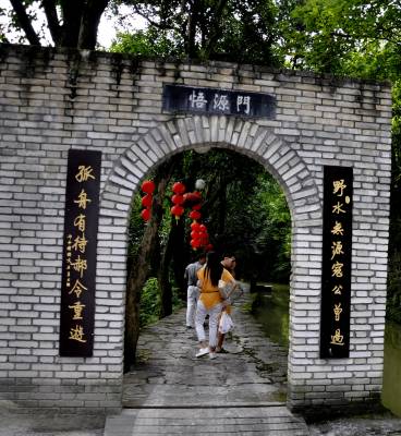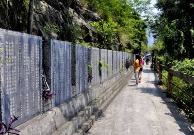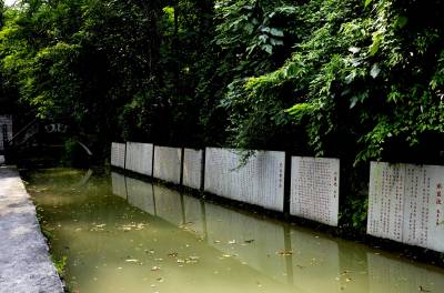 巴东:无源洞旅游景区打造巴楚文化风情长廊 7月26日,游客正在巴东县信陵镇巴山森林公园无源洞旅游景区观赏寇准碑林诗词、巴东千年文化诗词楹联等。