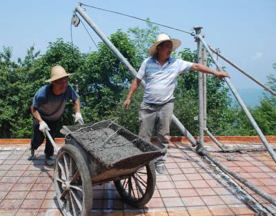 7月27日,工人顶着烈日正在水布垭镇杨家垭村新建的卫生室楼顶运输混凝土。从今年起巴东县筹资1468万元,计划通过3年时间让全县村卫生室全部达到“产权公有化、建设标准化、服务规范化、运行信息化、管理一体化”标准。 据悉,巴东今年内将完成345个村卫生室的“五化”建设,明后两年分别完成75个,确保2016年底,该县 “五化”村卫生室达100%,从整体上提高人民群众的健康水平和生活质量。 通讯员陈美强 德坤 显龙摄