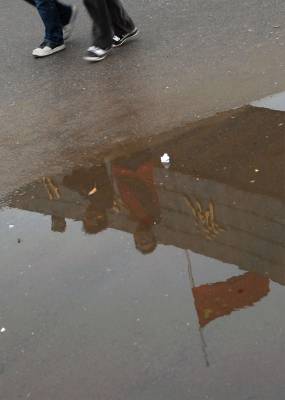 2010年4月21日,湖北经济学院校门,学生经过降半旗的校门。为表达全国各族人民对青海玉树地震遇难同胞的深切哀悼,国务院决定,2010年4月21日举行全国哀悼活动。