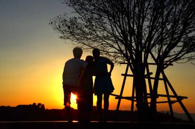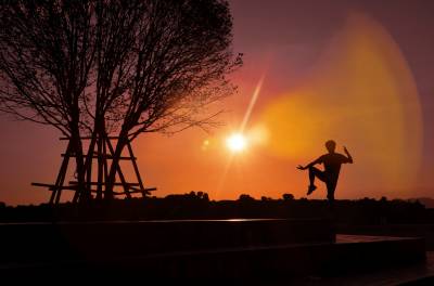 落日熔金映古宅