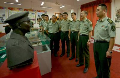 7月30日,应城一中讲解员正在为该市人武部干部介绍杨业功将军的生前事迹。应城一中陈列室里,收藏陈列着杨业功生前学习劳动工具、书法作品、在校生活、军旅生涯等实物20多件、照片100多幅。