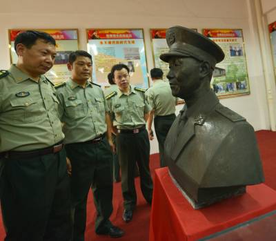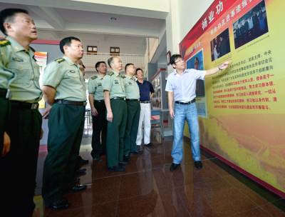 7月30日,应城一中讲解员正在为该市人武部干部介绍杨业功将军的生前事迹。今年,是军中焦裕禄杨业功将军逝世10周年。该市把杨业功母校为作开展群众路线教育联系点。八一前夕,应城各企事业单位、学校、厂矿许多干部职工都自发前往应城一中缅怀杨业功。(视界网 郑毅陶茂 摄)