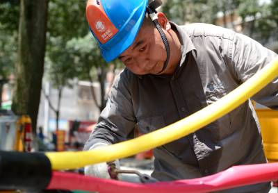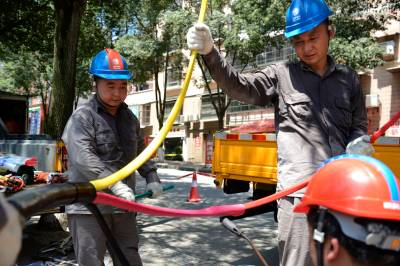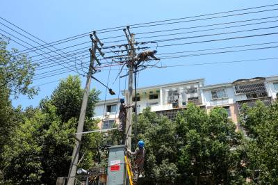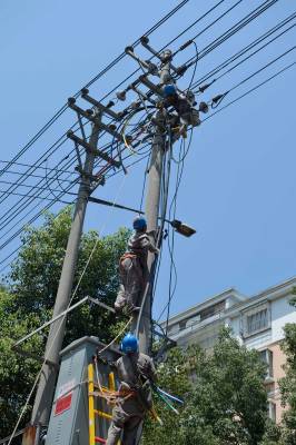 7月30日,电力员工在湖北省秭归县茅坪镇西楚路1#公变台区更换电力电缆。 连日来,三峡库区湖北省秭归县遭遇高温酷暑天气,用电负荷急剧攀升。当日11时30分,位于秭归县茅坪镇西楚路10千伏茅06西楚线1#公变台区的低压供电电缆,因天气炎热、负荷过高发生烧毁,造成389户居民停电。国网秭归县供电公司配电工区主任宋秀伦接到电话后,立即组织抢修人员,调集应急抢修物资,火速赶往停电事故现场,对烧毁的两回低压供电电缆进行更换,整个抢修过程用了3小时,于14点30分恢复供电。