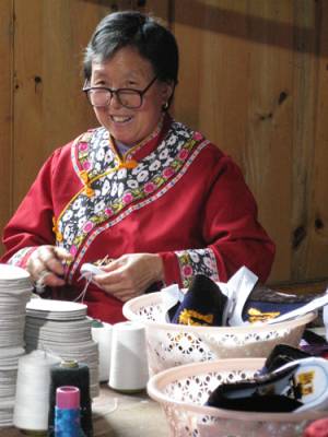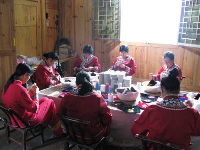 牵手”616”,咸丰绣花鞋”花”香山外荆楚网消息4月20日,田大姐绣花鞋厂的绣工们正在赶做绣花鞋。湖北省咸丰县虽然是贫困县,但这里土家族的绣花鞋,却以花样繁多和精美闻名,早在300年前,就是皇室贡品。2009年,作为省直”616”帮扶单位,省委统战部、省民委已相继投资100多万元扶持咸丰县的全国民族特需商品定点生产企业和官坝绣品楼建设,帮助绣花鞋产业做大做强。截至目前,咸丰县规模以上绣花鞋企业已有5家,从事绣品加工的农家女逾万名,每年销出的绣花鞋、拖鞋、鞋垫,不下40万双。这些土家族农家女全手工做出的绣花布鞋不仅畅销北京、上海、广州等城市商场,还走出国门,远销到欧美、澳大利亚、韩国等国家,年销售收入约5000万元。(咸丰县委宣传部剧成义18971882895)