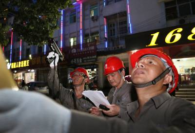 7月30日晚,供电人员在咸安区潜山路,进行变压器带电测试温度,查找隐患。连日来,湖北持续37度高温,用电负荷急速上升。为杜绝因设备发热被迫停运而发生停电事故,影响市民夏日生活,国网咸宁供电公司开展设备“体检测温”专项工作,预防和消除高温高负荷下设备的事故隐患。