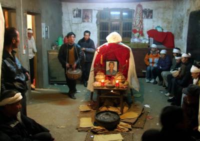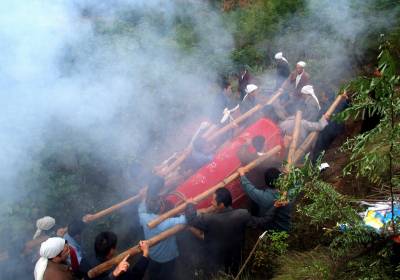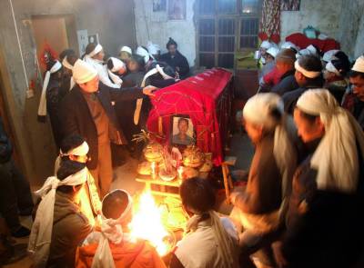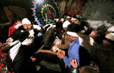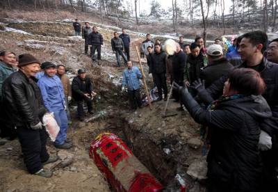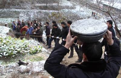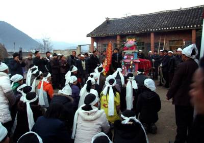 中国传统礼仪历来重视丧葬,所以自古就有“事死如事生”之说。郧县处陕西、湖北、河南三省毗连之地,历来秦风楚韵融汇,汉江南北丧葬习俗大体相同而略有差异,但都很隆重,尤其是对于去世的老人,大体有装殓、说信、相墓打井、吊丧、上贡菜、殓口、打待尸、出殡、上山、下圹、圆坟等程序。村中老人去世,不仅家人、族人视为大事,同村乡邻也纷纷吊唁,帮忙。出殡前夜“打待尸”,往往男女老少云集,听传统故事也听流行歌曲。所以农村丧葬习俗也是乡村文化生活的重要组成部分。