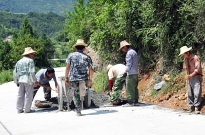 31日,巴东县官渡口镇水(水田垭)杨(杨基庄)村级公路一班民工正冒高温用混凝土浇灌公路水沟。水杨公路全长6.2公里,投资148万余元,7月上旬动工,8月中旬完工。连日来巴东持续高温,烈日炙烤大地,地面热浪翻滚,叫人难受。这班民工却冒高温、战酷暑,奋战在施工一线,用汗水浇筑农村畅通大道。(本报视界网穆世祝摄)15335850858