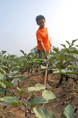 2014年8月1日,云梦县城关、隔蒲谭镇农村暑假中的孩子们。进入暑假,农村孩子们回到家乡,回到自己的老家回到田间地头。他们利用暑假帮忙爷爷奶奶、爸爸妈妈在地里学习劳动,或者除草,或者采摘毛豆,或者同家长一起上街购物。农村孩子暑假,一个劳动的假期,一个愉快的假期,一个亲近自然、走向大地的假期,一个充满生活乐趣的假期。本报视界网 陈保忠 摄