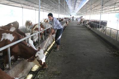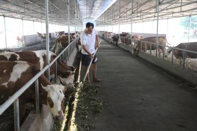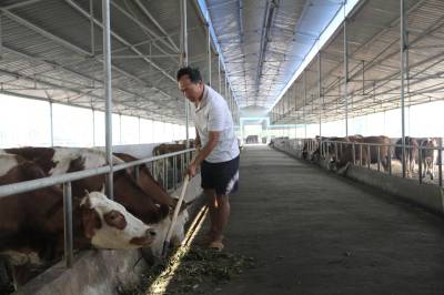 8月1日,沙洋县汉江牛业发展有限公司工人正在对养殖的母牛喂玉米秸秆。沙洋县汉江牛业发展有限公司计划投资10亿元,在马良镇王港村、童沙村等地利用汉江堤坝、防护林地及滩涂草地这一天然牧场,着力打造集母牛繁育、肉牛养殖屠宰、肉牛加工于一体的中南地区最大、产业链条最完整的能繁母牛产业园。其中一期占地400亩,总投资1.6亿元,建设母牛繁育和秸秆加工基地,拟建设20栋母牛舍,年饲养良种母牛1万头,加工利用秸秆50万吨。二期工程将投资3.4亿元,建设肉牛育肥场和屠宰加工厂,年出栏肉牛5万头、屠宰肉牛10万头。三期投资5亿元,建设4个肉牛养殖园区。目前已建成标准化牛舍6栋7万平方米,存栏西门塔尔母牛953头,计划到2014年底,将饲养能繁母牛达到2000头以上。本报视界网何长青摄